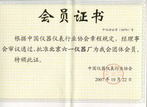中國儀器儀表行業(yè)協(xié)會會員證書